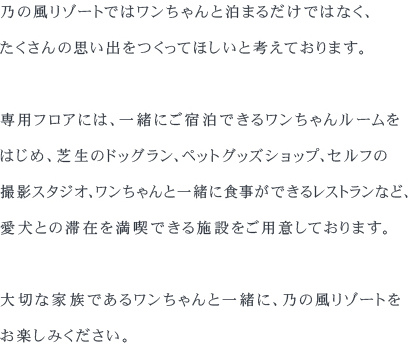 ペットフロア以外の施設・フロアはワンちゃんと同伴ではご入場いただけません。