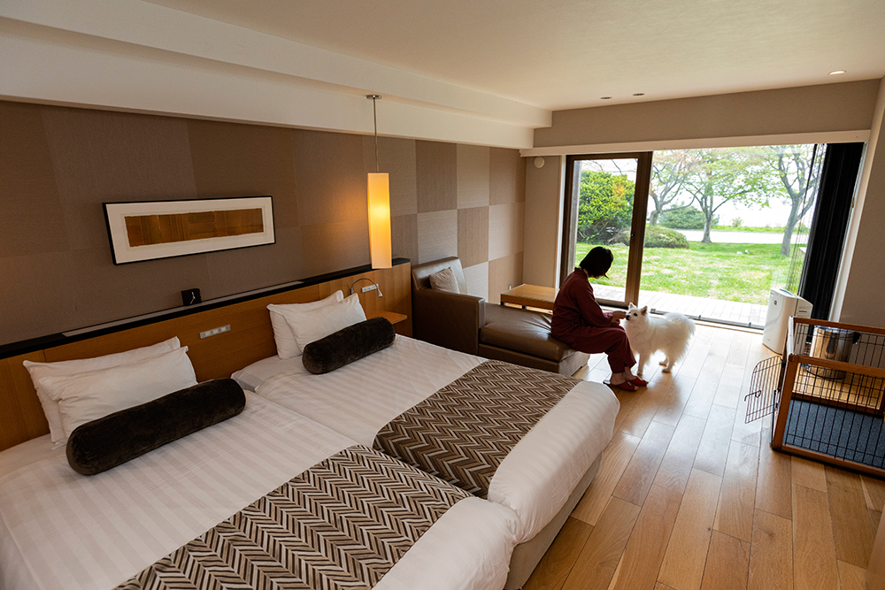 ワンちゃんも家族の一員だから、一緒にリゾートステイを楽しんで。