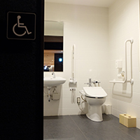 その他、館内の多目的トイレは1箇所のみでロビー階奥の階段横にございます。