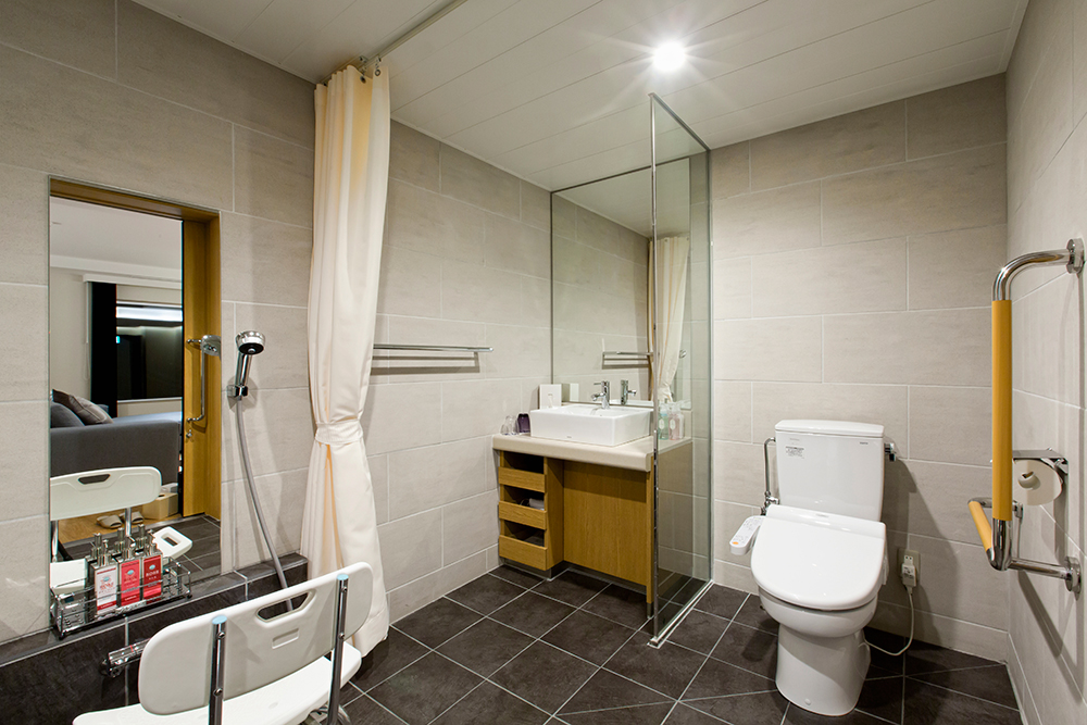 ただし、完全なバリアフリーではございませんので、手すりはなく、お手洗いも手狭です。