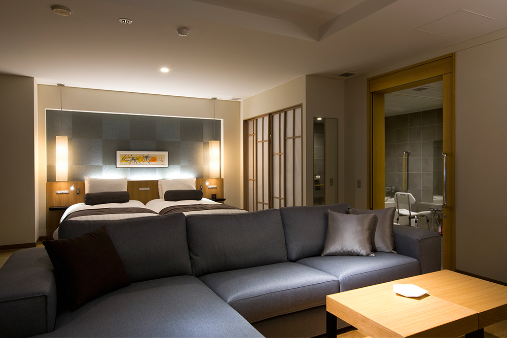 バリアフリー以外の客室も、室内は比較的平坦で段差も少なく、車椅子のままご入室いただけます。