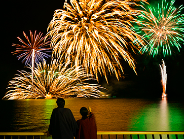 目の前に広がる大輪の華…、贅沢な夜のクルーズをお楽しみ下さい。